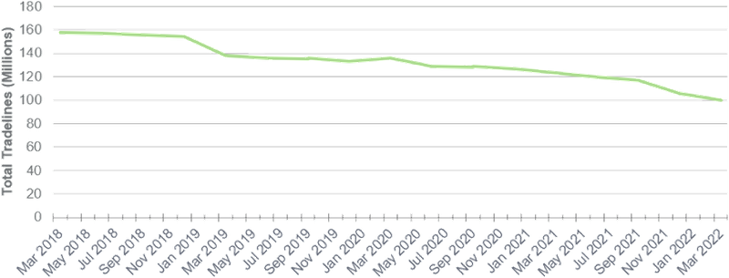 Figure 1: Number of Medical Debt Collections Tradelines, 2018 – 2022