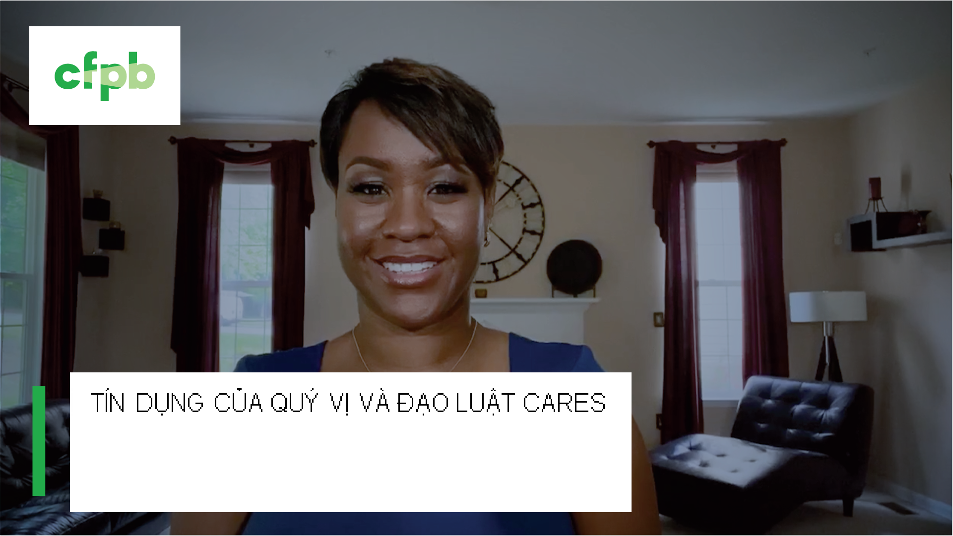Đạo luật CARES đặt ra những yêu cầu đặc biệt đối với các công ty báo cáo thông tin trả nợ của quý vị tới tổ chức báo cáo về tín dụng. Những yêu cầu này sẽ áp dụng nếu quý vị chịu ảnh hưởng bởi đại dịch coronavirus và nếu bên cho vay của quý vị cho phép quý vị điều chỉnh cho phù hợp để trả chậm một khoản trả nợ, hoãn một khoản nợ không trả đúng hạn, điều chỉnh khoản vay hoặc cứu trợ khác.