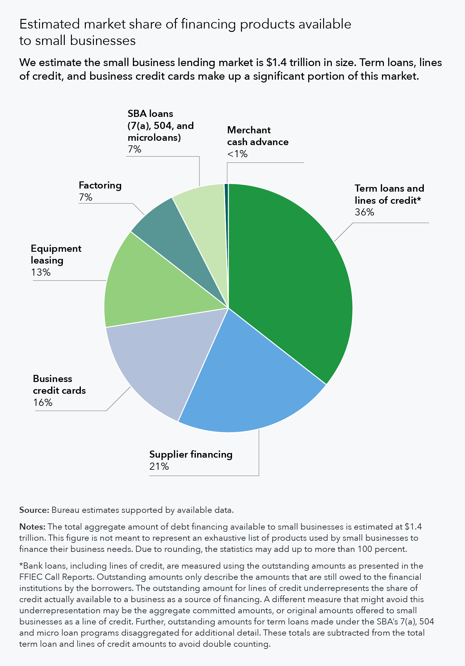 We are also issuing a white paper on the key dimensions of the small business lending landscape. Our current understanding of the small business lending environment tells us this market is vast and complex. Small businesses have many different options when it comes to financing products. Using publically available data supported by conversations with industry experts, we estimate the small business financing market is roughly $1.4 trillion in size. Term loans, lines of credit and business credit cards are among the most common financing products offered by financial institutions. In total, these products comprise nearly three-fourths of the marketplace, when excluding supplier financing.